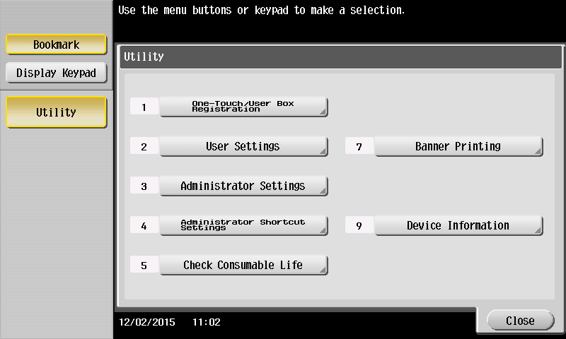 5a.1 To get the IP address off of the copier, press the “Menu/Home” button, then press the “utility” option on the screen, then “Device Information”.