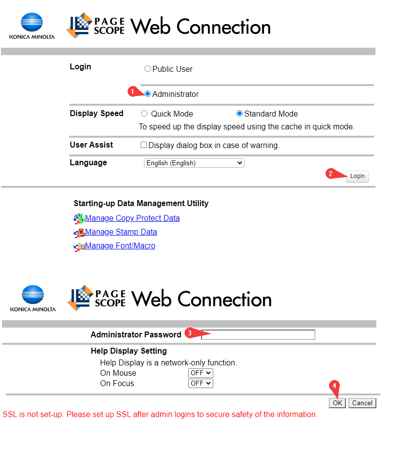 5c. On the login screen, follow the example that matches the screen you have. The default admin password is 12345678 or 1234567812345678.