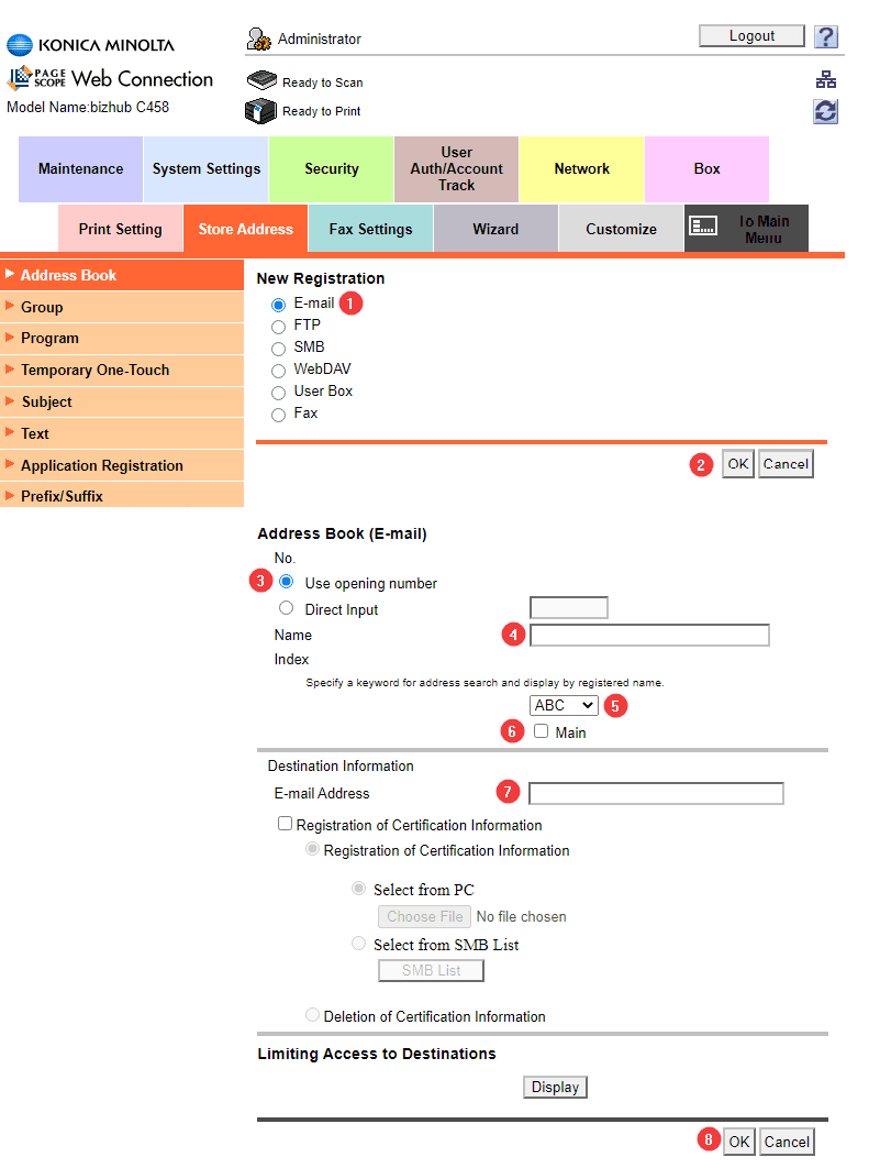 6. Click “Store Address” > “Address Book” > “New Registration”.