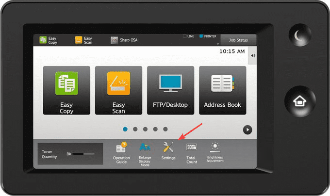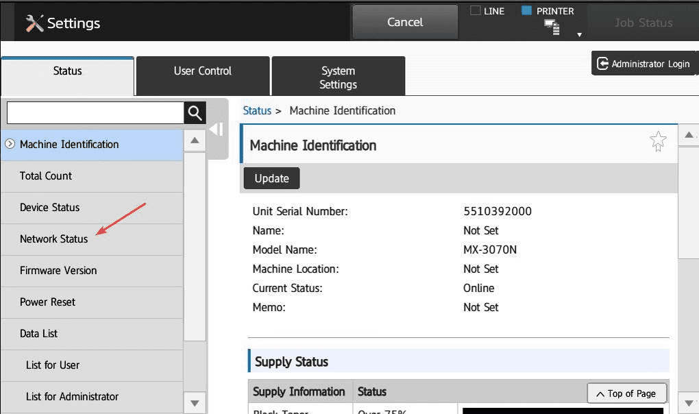 1. Start by getting the IP address from the copier. You can access the IP address by pressing the “Settings” option on the main screen and then press “Network Status” and find the “IPv4 Address”.