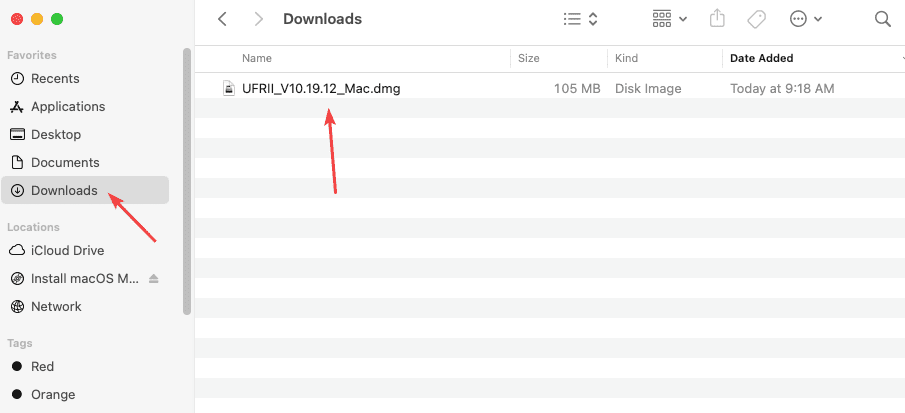 3. Open the “Finder” application and navigate to the “Downloads” folder and double-click the “UFRII” file.
