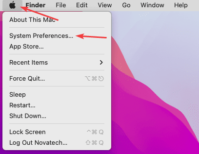 6. Click the “Apple” icon at the top left of the screen and then click “System Preferences”.