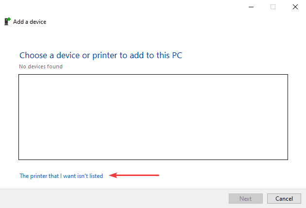 13. Click “The printer that I want isn’t listed”.