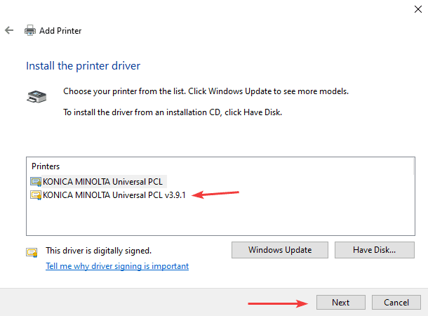 21. Select the driver from the list with v3.9.1 and click “Next”.