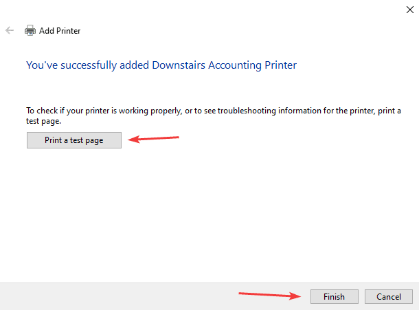 25. You can now click “Print a test page” to see if it is working and then click “Finish”.
