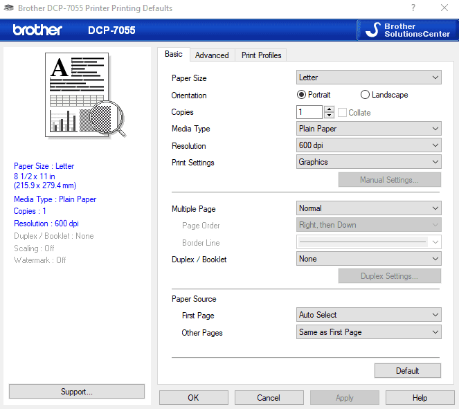 6. From here you can select the defaults you want to set, such as two or one-sided printing and color or black and white. Once finished, click the “OK” button at the bottom, then “OK” on the Printer properties window and you are now finished.
