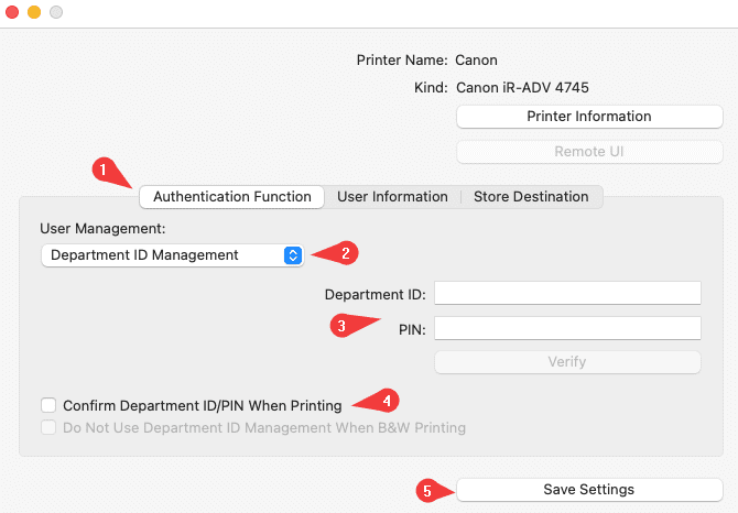 5c. Fill out the “Department ID” and “PIN” if your company is using pins.