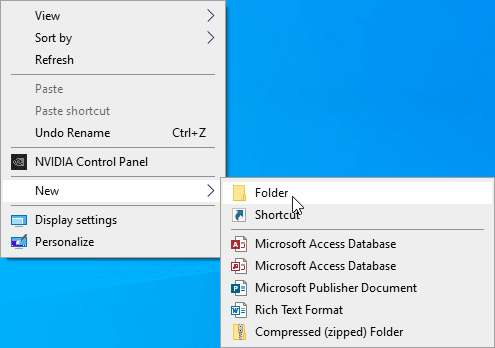 1. Right click a blank space on the desktop and go to “New”, then select “Folder”.