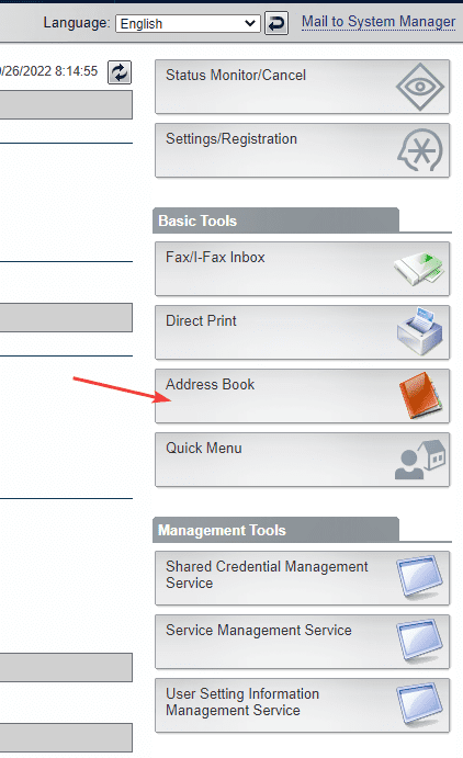 13. Once you are logged in, click the “Address Book” option at the right of the screen.
