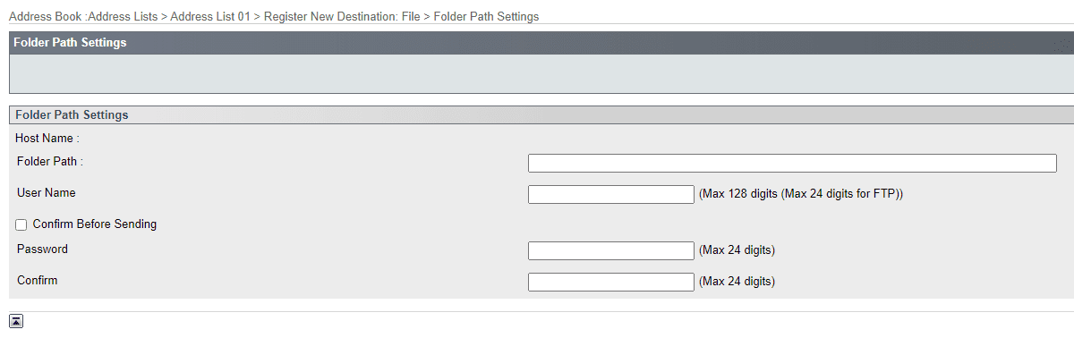 17. The “Folder Path” is going to be “Scans” and the “Username” is your username for the computer. Then input the password you use for the computer and click “OK” and then “OK” again on the next screen. Now you can go to the copier and try to scan something to your folder.