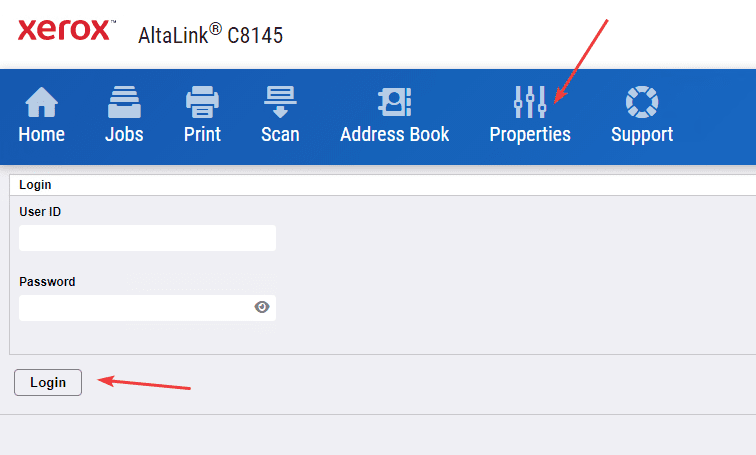 3a. The default login is “admin” for the username and “1111” for the password. On some models, you may need to use the serial number for the password, which can be located on the back of the copier.