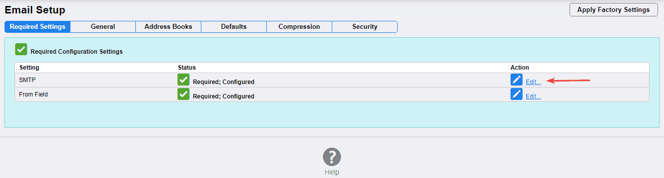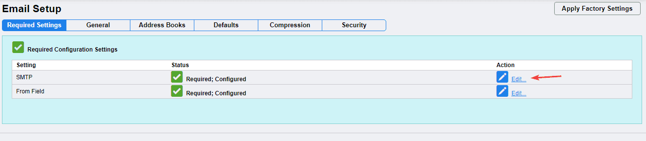 5. Under the “Required Settings” tab, click the “Edit” option for the “SMTP” setting.