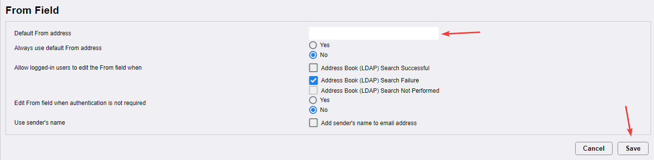 10. Make sure the email address that you want to use is in the “Default From address” and then select the options you want below and click “Save” when finished.
