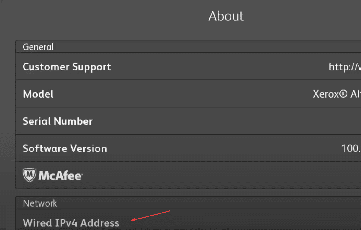 6. Go to the physical machine and press the “Machine Status” button and then, on the “Machine Information” tab, find the IPv4 address. On some models, you will have a “Device” option on the main screen, then press the “About” option and it will be at the bottom.