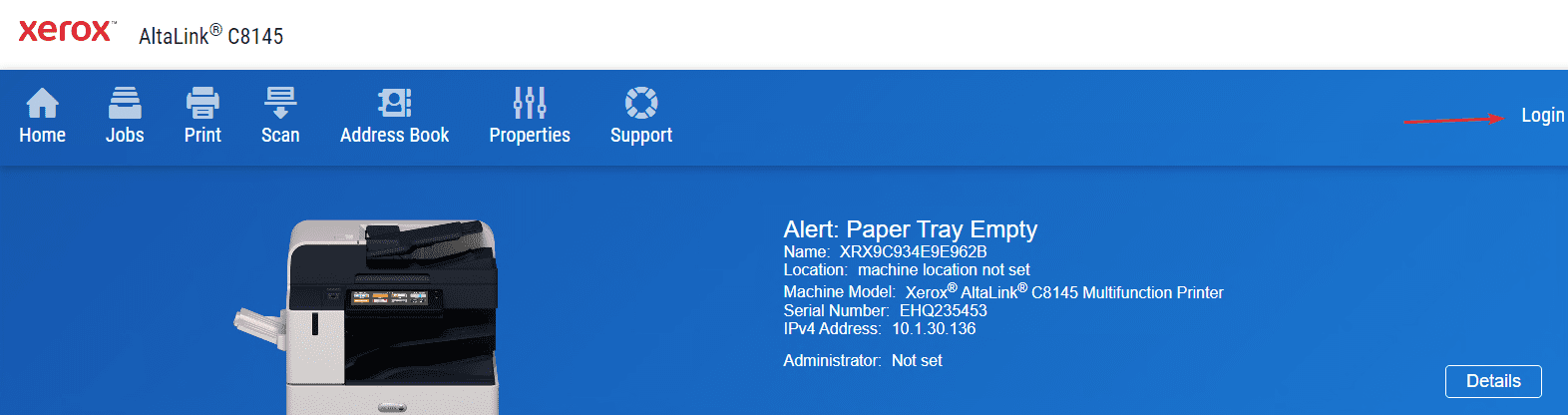 10. Go to the physical copier and press the “Machine Status” button and then, under the “Machine Information” tab, find the IP address. On some models, you will have a “Device” button on the main screen and then “About” and the IP is at the bottom.