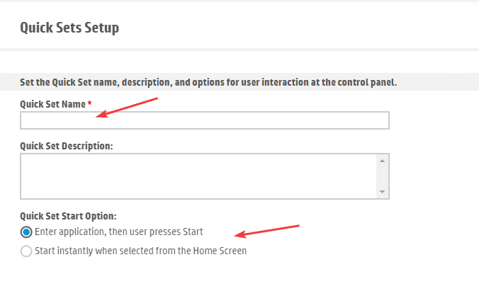 11. Give the Quick Set a name. At the bottom, the top bubble will allow you to make changes to settings before scanning the document. The second option will start the scan as soon as you select your quickset. Once you have finished, click “Next”.