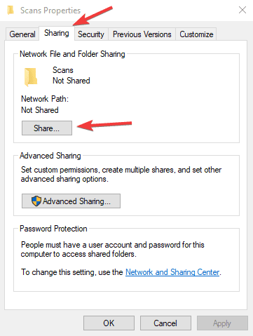 5a. If you get a login prompt when clicking the “Share” button, you will need to input the admin credentials for the computer or contact your IT department for further assistance.