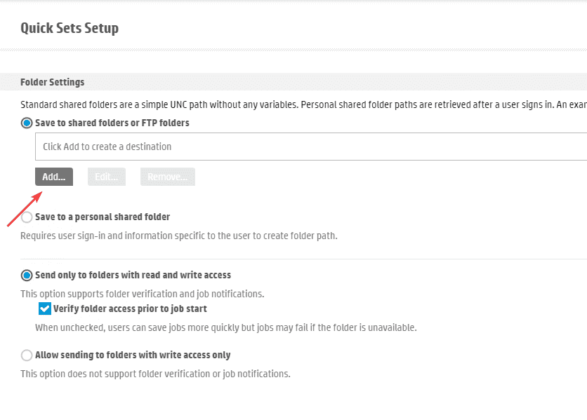 15. Click “Add” under “Folder Settings”. You can keep the other settings on this screen defaulted.