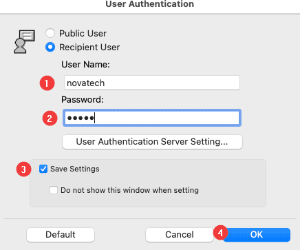 4. Type in either the Username/Password or Pin into the box and then check the “Save Setting” box and click “OK”.