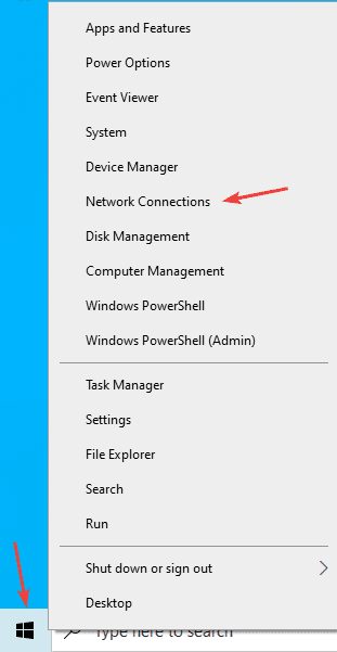 7. Right-click the “Windows” icon at the bottom of the screen and click “Network Connections”.