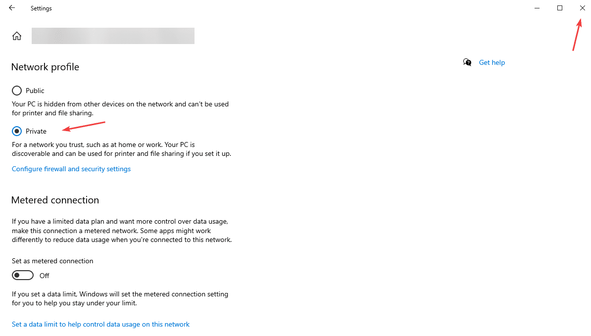 9. Select the “Private” bubble and then close the window.